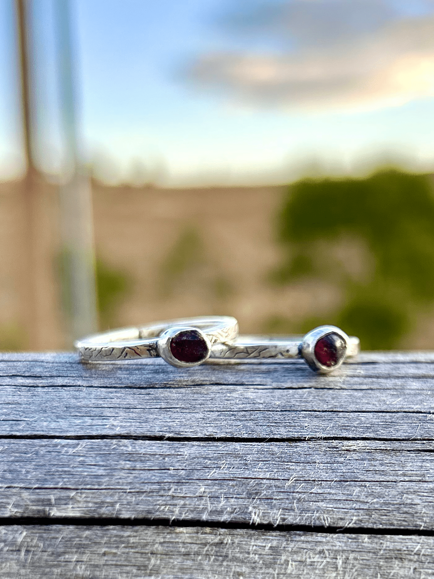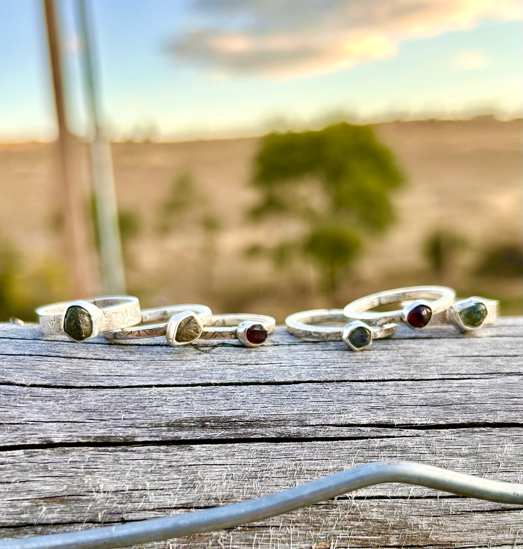 Rough uncut sapphires or garnets in our Mountain Saged sterling silver bands.